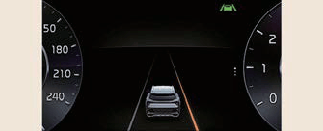 Lorsque le marquage des voies (ou des bords de routes) est détecté, les lignes de voie sur le combiné passent du gris au blanc et le témoin lumineux vert (
