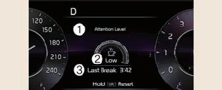 Le message d’avertissement s’affiche sur le combiné et un avertissement sonore retentit pour suggérer au conducteur de prendre une pause lorsque son niveau d'attention est inférieur à 1.