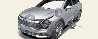TOUJOURS placer le cric aux positions de levage indiquées sur le véhicule et JAMAIS sur les pare-chocs ou toute autre partie du véhicule pour soutenir le cric.