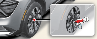 Lors de la dépose de l'enjoliveur, toute utilisation d'un outil autre que l'outil (1) fourni risque d'endommager l'enjoliveur de roue.