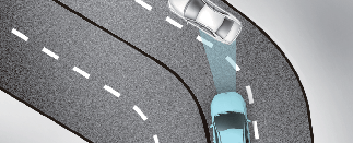 Система інтелектуальної рекуперації може розпізнати автомобіль на сусідній смузі руху під час руху на повороті. Тоді вона збільшить рівень гальмування та сповільнить рух автомобіля.