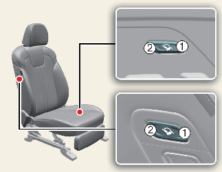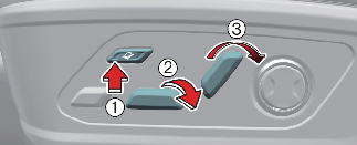 หากต้องการบันทึกตำแหน่งเบาะนั่งผู้โดยสารปัจจุบันเป็นตำแหน่งย้อนกลับ ให้ปรับเบาะนั่งผู้โดยสารไปยังตำแหน่งที่ต้องการ จากนั้นกดด้านหน้า (1) ของสวิตช์เบาะนั่งพักผ่อนสบายที่ด้านล่างของเบาะที่นั่ง 3 ครั้งภายในระยะเวลา 2 วินาที การดำเนินการนี้จะบันทึกตำแหน่งปัจจุบันเป็นตำแหน่งย้อนกลับ