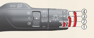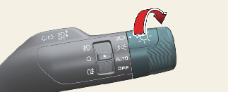 เพื่อเปิดการทำงานของไฟส่องสว่าง ให้หมุนที่บิดตรงส่วนปลายก้านบังคับไปที่ตำแหน่งต่าง ๆ ต่อไปนี้