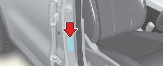 ป้ายยางที่อยู่บนเสากลางฝั่งผู้ขับขี่ระบุแรงดันลมยางที่แนะนำสำหรับรถของคุณ