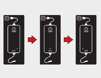 Ohjausrasian näyttöikkunan esittämä lataustaso muuttuu joka kerta, kun painiketta (1) painetaan.