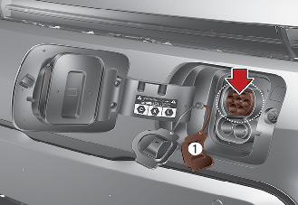 Avaa latausluukku ja avaa sitten yhteen suojus (1).