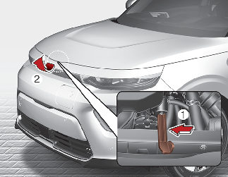 Siirry auton etuosaan, nosta konepeltiä hieman, nosta sisäpuolista turvasalpaa (1) ja nosta konepelti (2).