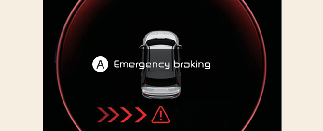 Noodremmen wordt geactiveerd om een aanrijding met de voertuigen die van links en rechts naderen te helpen voorkomen.