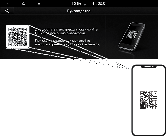 Сканирование QR-кода: Нажмите [SETUP] > [Общие] > [Системная информация] > [Руководство онлайн]. Просканируйте QR-код, затем нажмите на уведомление для перехода на веб- страницу.
