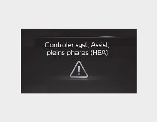 Lorsque l'assistant phare ne fonctionne pas correctement, le message d'avertissement « Check High Beam Assist (HBA) system