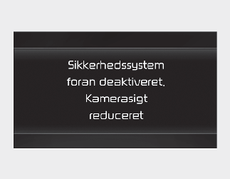 Fremadgående antikollisionsassistent fungerer muligvis ikke i 15 sekunder efter køretøjets start, eller frontkameraet er initialiseret.