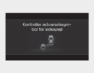 Når advarselslampen på sidespejlet (udvendigt spejl) ikke fungerer korrekt, vises advarslen 'Kontrollér advarselslampe for
