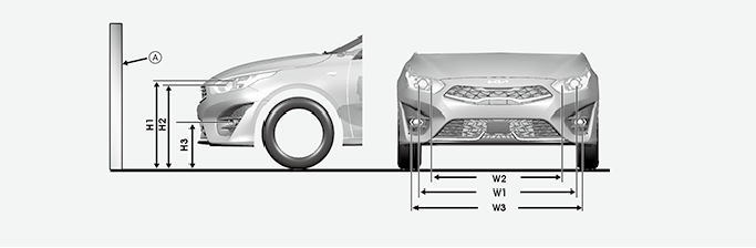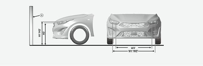* Hvis der er behov for justering, skal målet justeres efter den faktiske måling af et køretøjs frihøjde, eller du skal besøge en autoriseret Kia-forhandler/-servicepartner. Det er fordi, at det kan afvige fra et køretøjs faktiske frihøjde.