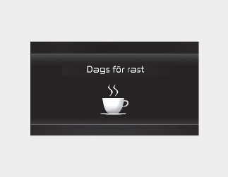 Meddelandet “Överväg att ta en paus” visas i klustret, och en varningssignal låter för att uppmana föraren om att ta en paus när förarens uppmärksamhetsnivå är under 1.
