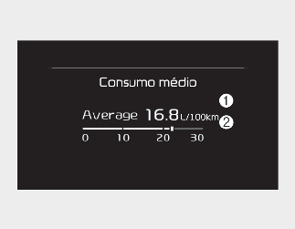 Intervalo de economia de combustível: 0,0 ~ 30 km/l, l/100 km ou 0,0 ~ 50,0 MPG