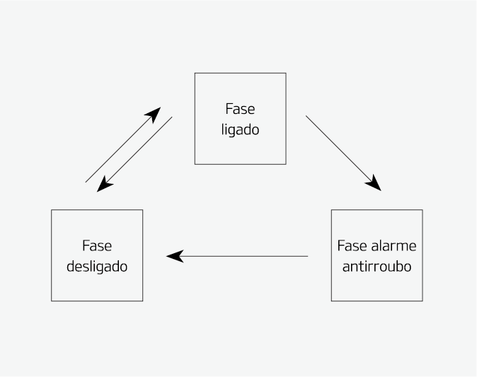 Este sistema foi concebido para oferecer proteção em caso de entradas não autorizadas no veículo. Funciona em três fases: a primeira é a fase “ligado”, a segunda a fase “alarme antirroubo” e a terceira a fase “desligado”. Quando ativado, o sistema ativa um alarme sonoro, que faz piscar as luzes intermitentes de emergência.