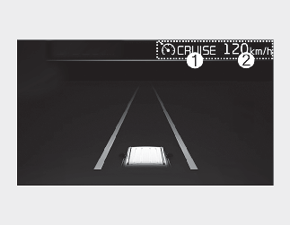 (1) Se há um veículo à frente e o nível de distância selecionado (2) Definir a velocidade (3) Se há um veículo à frente e a distância do veículo-alvo