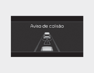 Com o controlo de velocidade inteligente em funcionamento, quando o risco de colisão com o veículo à frente é elevado, a mensagem de aviso "Collision Warning" (Aviso de colisão) é apresentada no painel de instrumentos e é emitido um aviso sonoro para avisar o condutor. Preste sempre atenção à estrada ao conduzir e, caso seja necessário, pressione o pedal do travão para reduzir a sua velocidade de condução, de forma a manter uma distância segura.
