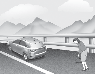 Para impedir o movimento do veículo enquanto troca um pneu, engate sempre devidamente o travão de estacionamento e bloqueie sempre a roda diagonalmente oposta à roda cujo pneu está a ser trocado.