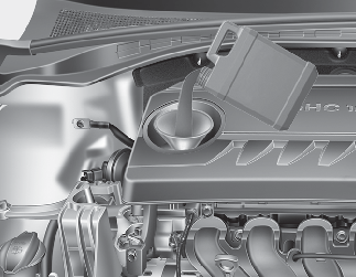 Depois de remover a cobertura do motor, encha o depósito de óleo do motor. (Para Smartstream G1.0 T-GDi, Smartstream G1.0 T-GDi MHEV, Smartstream G1.5 T-GDi, Smartstream G1.5 T-GDi MHEV)