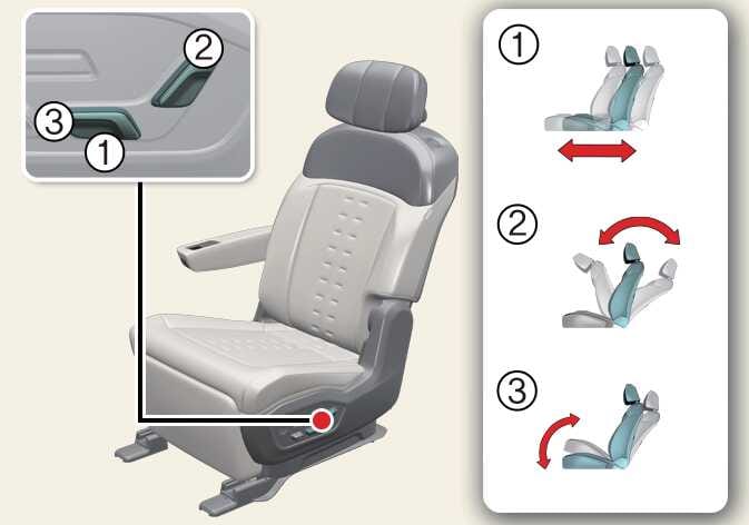 När du justerar förarsätet, och det inte finns tillräckligt med utrymme mellan den andra radens säten på förarsidan justeras det först automatiskt för att säkra utrymme, och sedan justeras förarsätet.