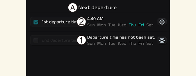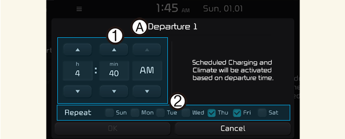 Установите ожидаемое время отправления для расписания зарядки и заданной температуры.