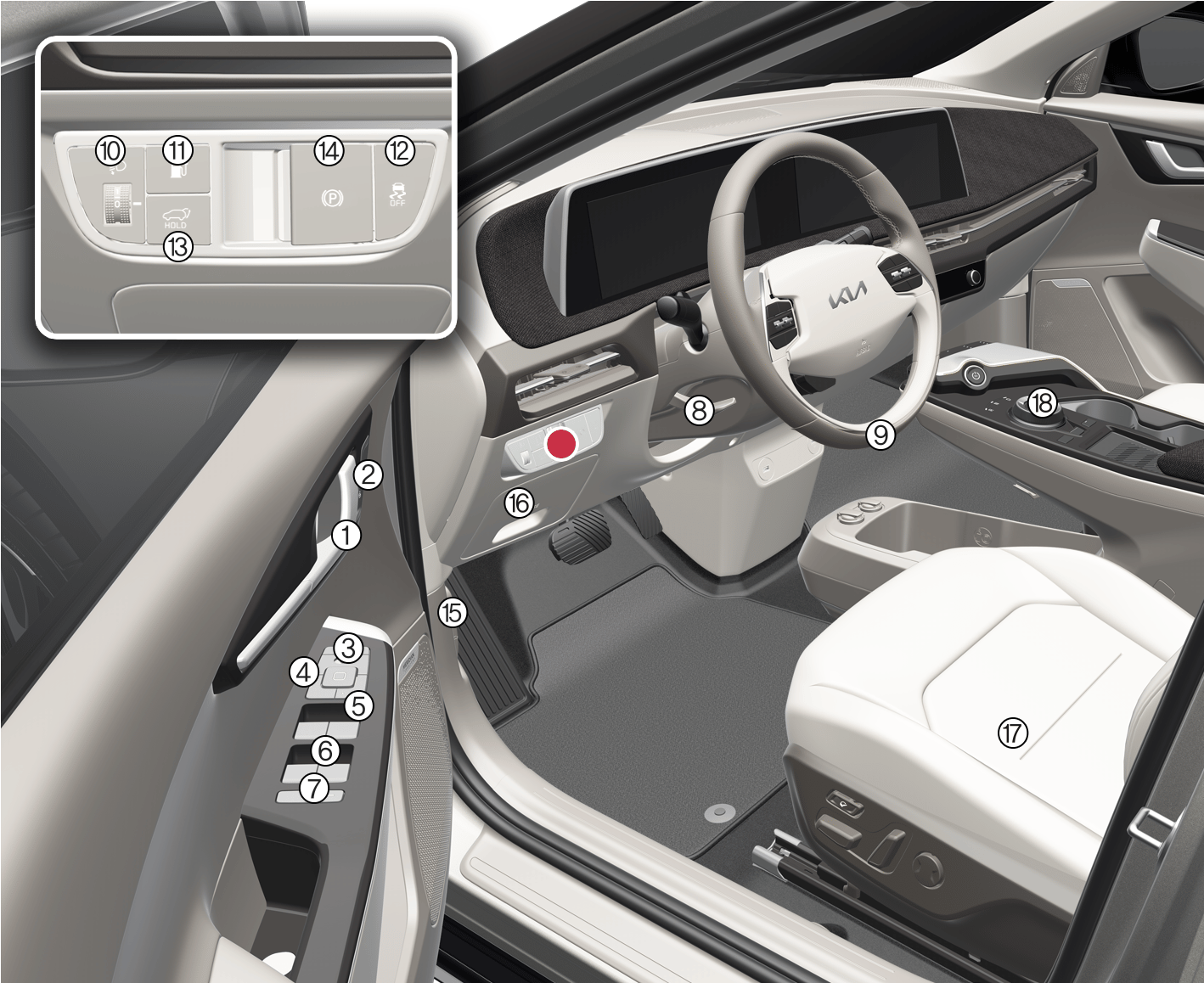 Кнопка открытия/закрытия крышки гнезда для зарядки Подробнее