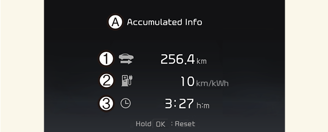Значения среднего расхода электроэнергии не отображаются для более точного расчета, если автомобиль движется не более 10 секунд или прошел не более 50 метров (0,03 мили) с момента переключения кнопки EV в положение «ON» (Вкл.).