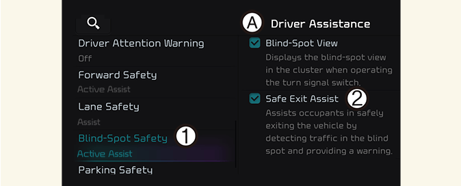При включенном двигателе выберите Настройки → Автомобиль → Помощь при вождении → Безопасность в слепой зоне → Обеспечение безопасного выхода на экране информационно-развлекательной системы, чтобы включить или выключить систему обеспечения безопасного выхода.
