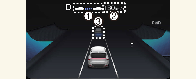 Расстояние до впереди идущего транспортного средства на панели отображается в соответствии с фактическим расстоянием между вашим автомобилем и автомобилем, идущим впереди.