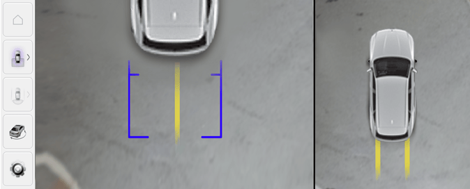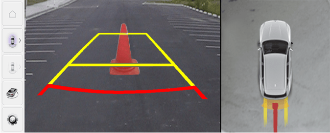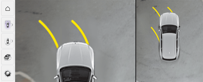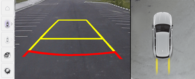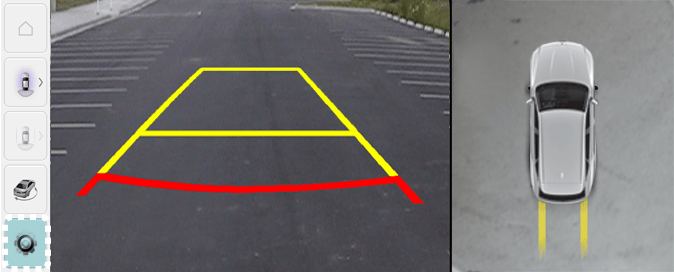 Рекомендации по парковке будут отображаться в правой части монитора кругового обзора, если выбран пункт Помощь при парковке, вид спереди или сзади.
