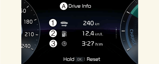 Ръчно: Натиснете и задръжте бутона OK на волана докато се покаже средната икономия на гориво.