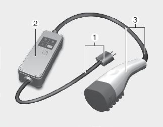 A corrente de carregamento é alterada sempre que o botão (1) é pressionado durante menos de 1 segundo com o carregador ligado a uma tomada elétrica mas não ao veículo. ![]() |