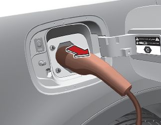 Antes de desligar a ficha de carregamento, certifique-se de que as portas são desbloqueadas. Quando a porta for bloqueada, o sistema de bloqueio da ficha de carregamento não irá permitir uma desconexão. Para evitar o roubo do cabo de carregamento, a ficha de carregamento não pode ser desligada da entrada quando as portas estão bloqueadas. No entanto, se o veículo estiver no modo AUTO da ficha de carregamento, este será desbloqueado automaticamente da entrada quando o carregamento for concluído.