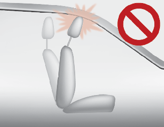Se reclinar o encosto do banco para a frente com o encosto de cabeça e a almofada do banco levantada, o encosto de cabeça pode entrar em contacto com a pala para o sol ou outras partes do veículo.