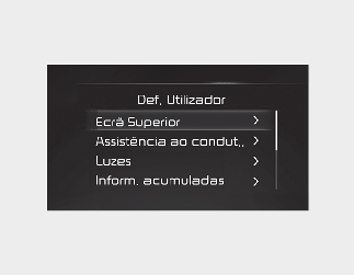 * Se a definição for alterada com o veículo em andamento, a definição alterada pode não ser imediatamente aplicada. |