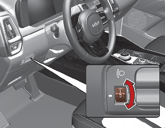 Para regular o nível do feixe dos faróis de acordo com o número de passageiros e o peso da carga transportada na bagageira, rode o interruptor de nivelamento dos faróis.