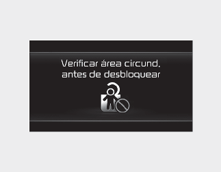 • Quando o bloqueio de segurança eletrónico para crianças está a funcionar e é detetada a aproximação de um veículo na traseira, as portas traseiras não podem ser destrancadas se o condutor tentar destrancar as portas traseiras através do botão de bloqueio de segurança eletrónico para crianças. É apresentado no painel de instrumentos a mensagem de aviso "Check surroundings then try again" (Verifique o espaço em volta e tente outra vez).