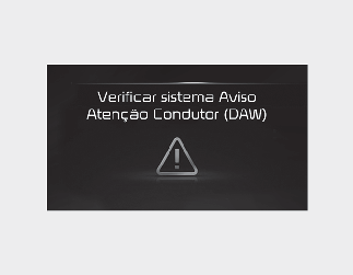 Quando o Aviso de atenção do Condutor não está a funcionar corretamente, a mensagem "Check Driver Attention Warning (DAW) system" (Verificar sistema Aviso Atenção Condutor (DAW)) é apresentada no ecrã do painel. Se isto acontecer, solicite a inspeção do veículo numa oficina profissional. A Kia recomenda que visite um concessionário/parceiro de serviços autorizado Kia.