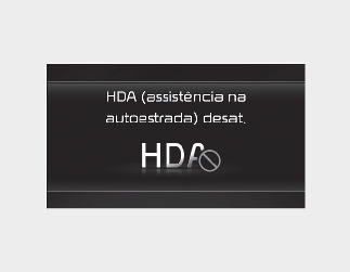 Se o condutor ainda não tiver colocado as mãos no volante após o aviso de mãos fora do volante, a mensagem de aviso "Highway Driving Assist (HDA) system canceled" (Sistema de assistência à condução em autoestrada (HDA) cancelado) é apresentada.