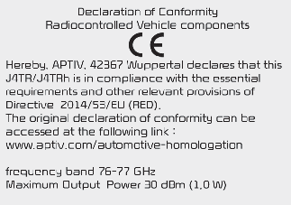 Os componentes de radiofrequência (radar dianteiro) estão em conformidade com:
