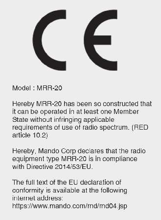 Os componentes de radiofrequência (radar dos cantos traseiros) estão em conformidade com: