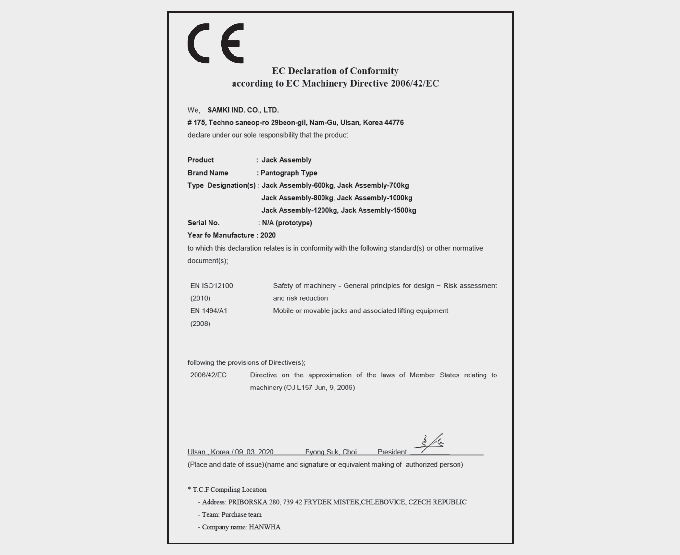Declaração de Conformidade CE para o macaco