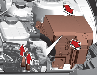 Depois de inspecionar o painel de fusíveis do compartimento do motor, coloque e fixe bem a tampa do painel até ouvir um nítido som de clique.