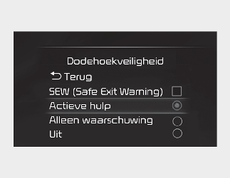 Als u voor ‘Off’ (uit) kiest, gaat de Blind-spot Collision-avoidance Assist uit.