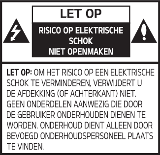 Om het risico op een elektrische schok te verminderen verwijdert u de afdekking of de achterkant van dit product niet. Er zijn geen onderdelen aanwezig waar de gebruiker onderhoud aan kan plegen. Onderhoud dient alleen door bevoegd onderhoudspersoneel plaats te vinden.