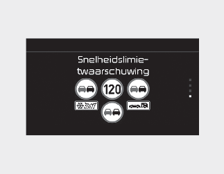 Wanneer de Intelligent Speed Limit Warning (slimme snelheidslimietwaarschuwing) geen betrouwbare informatie over snelheidslimieten heeft, wordt het symbool zowel op het instrumentenpaneel als op het navigatiescherm weergegeven.