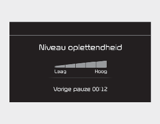 Wanneer de aandacht van de bestuurder afneemt tot onder aandachtsniveau 1, verschijnt de melding 'Consider taking a break' ('Overweeg het om een pauze te nemen') op het instrumentenpaneel en klinkt een waarschuwingssignaal om de bestuurder aan te sporen een pauze te nemen.