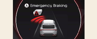 The warning message, an audible warning and the steering wheel will vibrate to warn the driver that emergency braking will be assisted. The brake assist will be activated and it helps avoiding collision of a vehicle, pedestrian and cyclist.