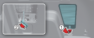 אם מחבר הטעינה לא מתנתק עקב פריקת המצבר ו/או כשל במערכת החשמל, פתח את המכסה (1), בחלק הימני של ארגז האחסון ומשוך קלות את כבל החירום (2). לאחר מכן מחבר הטעינה יתנתק.